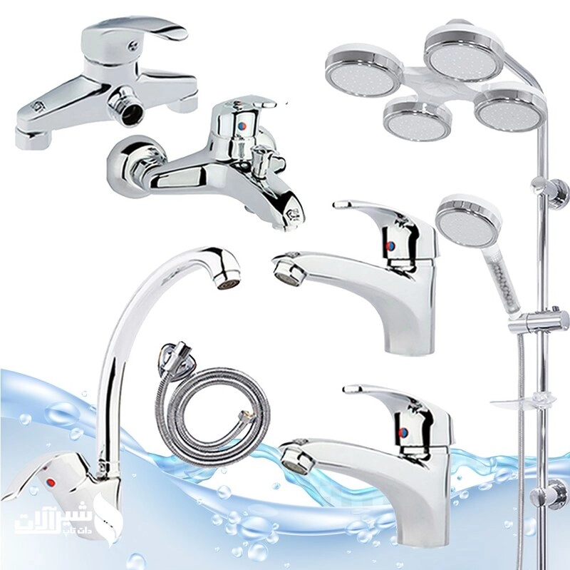 ست ۹ عددی شیرآلات برند آیدا صنعت مدل قهرمان اردکی | شیر ظرفشویی + دو عدد روشویی + حمام + دو عدد توالت + علم دوش یونیورست مدل شیپوری + دو شلنگ توالت | سفید کروم براق۱۰۰٬۰۰۰٬۰۰۰ تومان