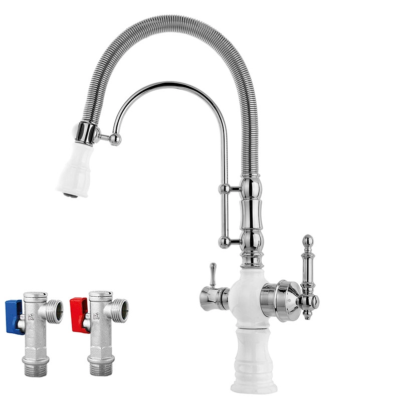 ست ۶ عددی شیرآلات مدل قهرمان | شیر ظرفشویی کلاسیک دومنظوره بیزانس + روشویی + حمام + توالت + شلنگ توالت + علم دوش شیپوری | کروم براق۱۰۰٬۰۰۰٬۰۰۰ تومان