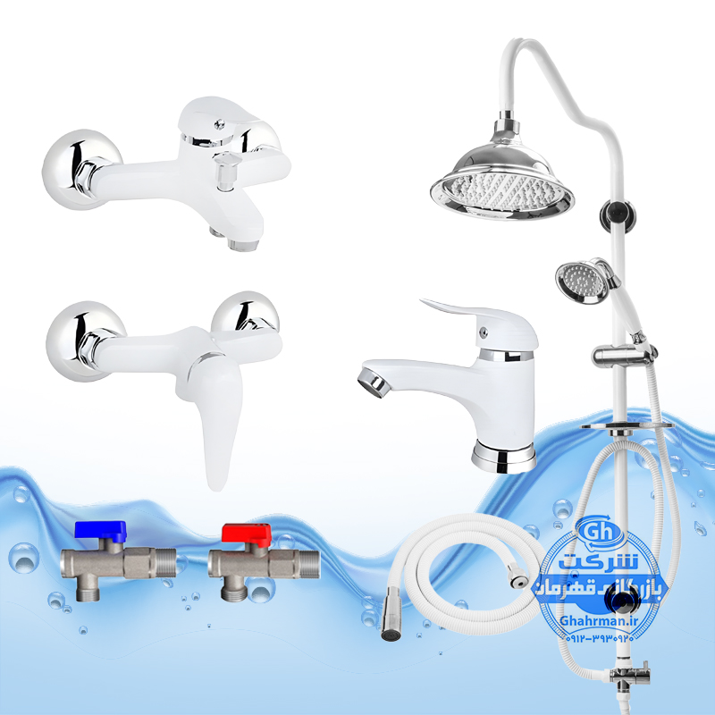 ست ۷ عددی شیرآلات برند آیدا صنعت مدل قهرمان | شیر روشویی + حمام + توالت + علم دوش شیپوری + شلنگ توالت + ۲ عدد شیر پیسوار | سفید کروم براق۱۰۰٬۰۰۰٬۰۰۰ تومان