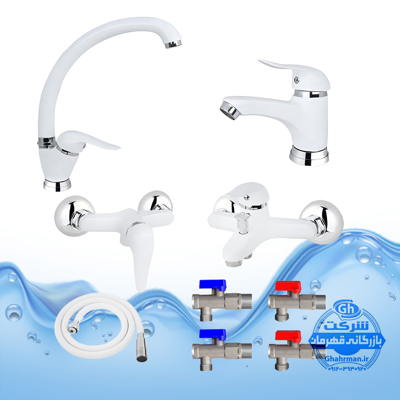 ست ۹ عددی شیرآلات برند آیدا صنعت مدل قهرمان اردکی | شیر ظرفشویی + روشویی + حمام + توالت + شلنگ توالت + چهار عدد پیسوار برنجی | سفید کروم براق۱۰۰٬۰۰۰٬۰۰۰ تومان