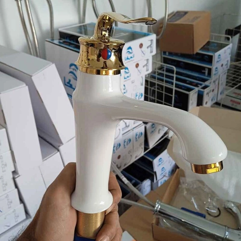 ست 3 عددی شیرالات اهرمی آیدا سفید طلایی مدل بامبو