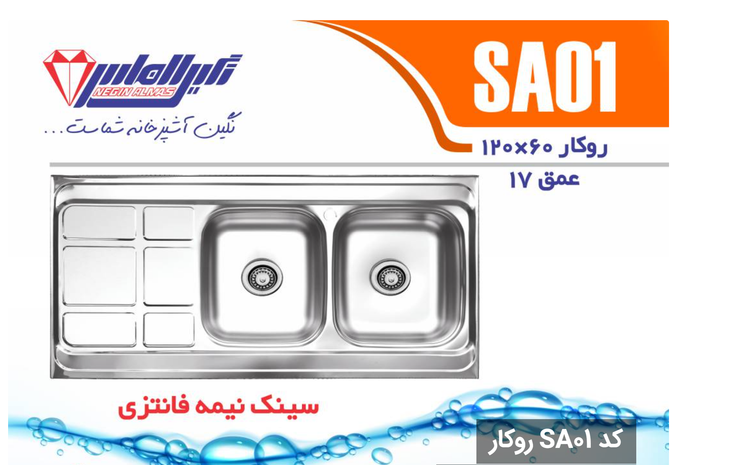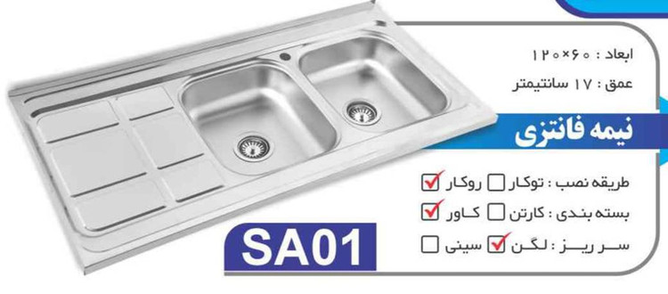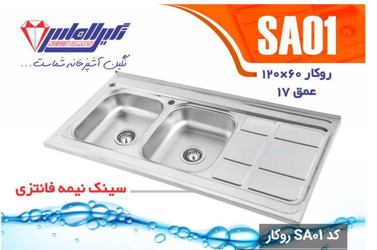 سینک نیمه فانتزی روکار کد SA01 سایز 60×120 عمــق 17