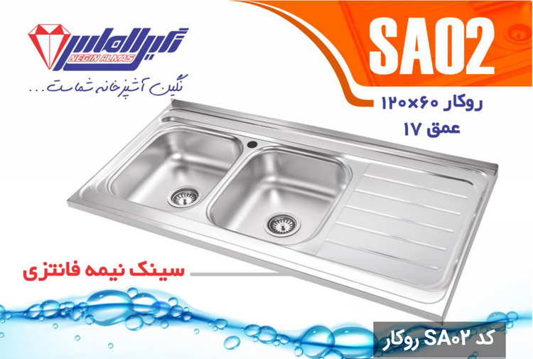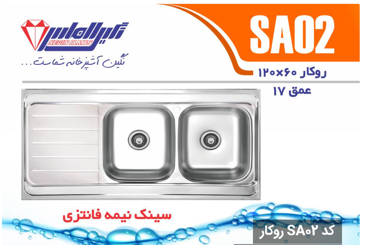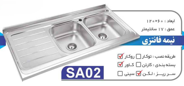 سینک نیمه فانتزی روکار کد SA02 سایز 60×120 عمــق 17