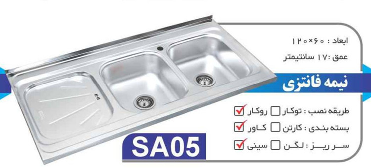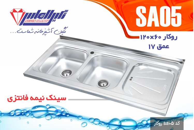سینک نیمه فانتزی روکار کد SA05 سایز 60×120 عمــق 17