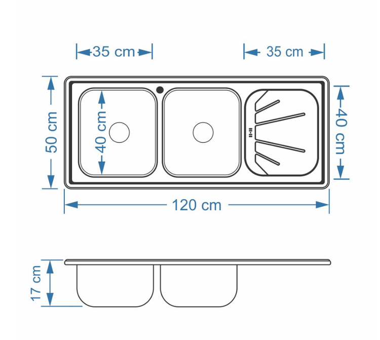 سینک نیمه فانتزی توکار کد SA06 سایز 50×120 عمــق 17