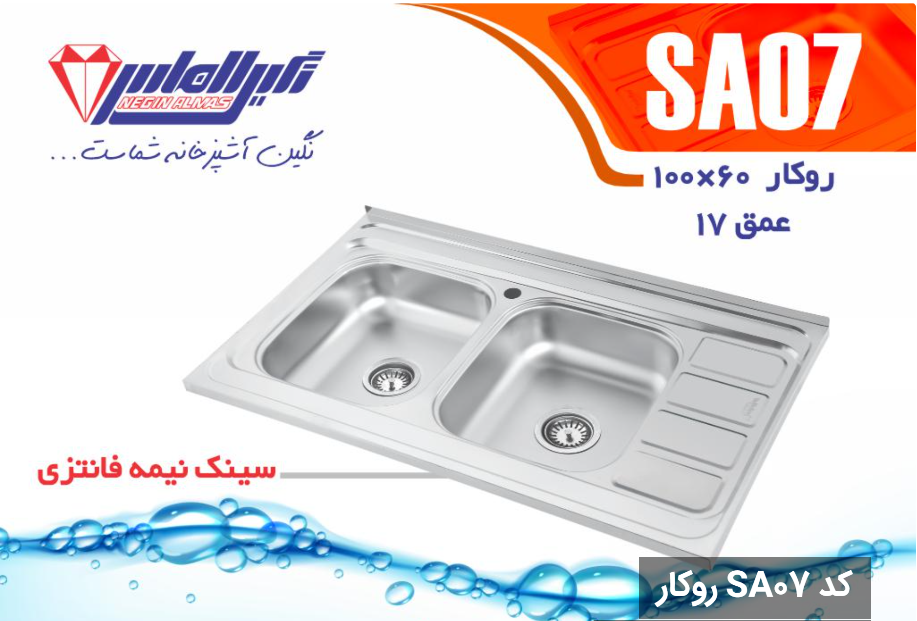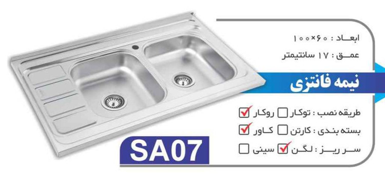 سینک فانتزی روکار کد SA07 سایز 60×100 عمق 17