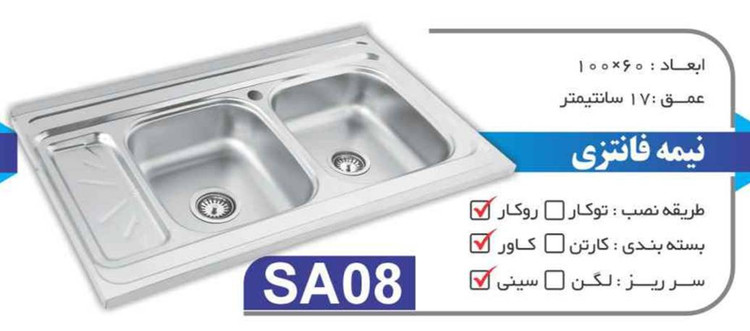 سینک نیمه فانتزی روکار کد SA08 سایز 60×100 عمــق 17