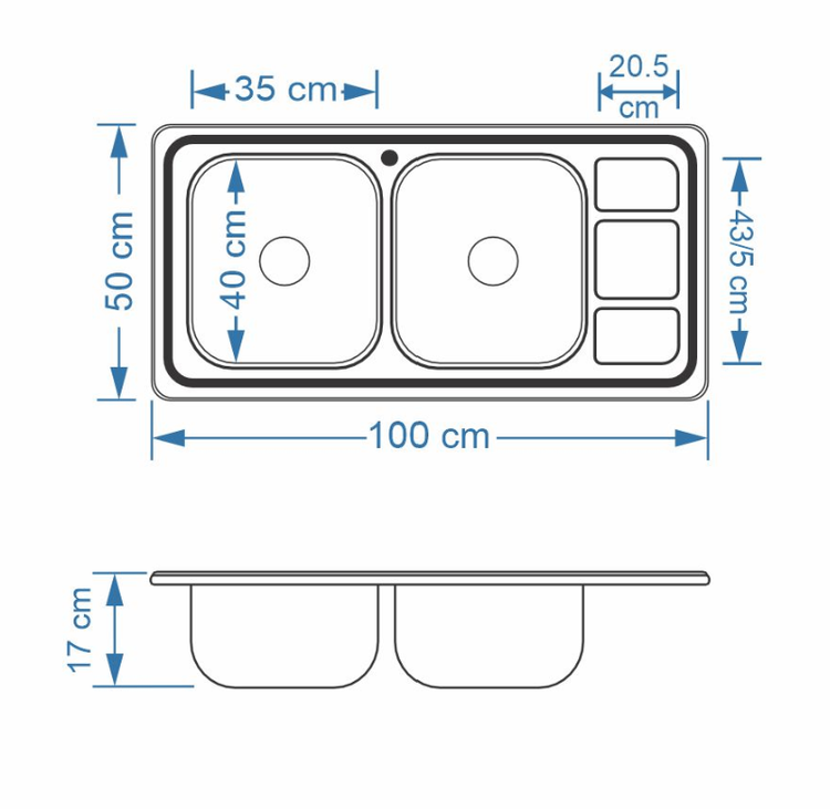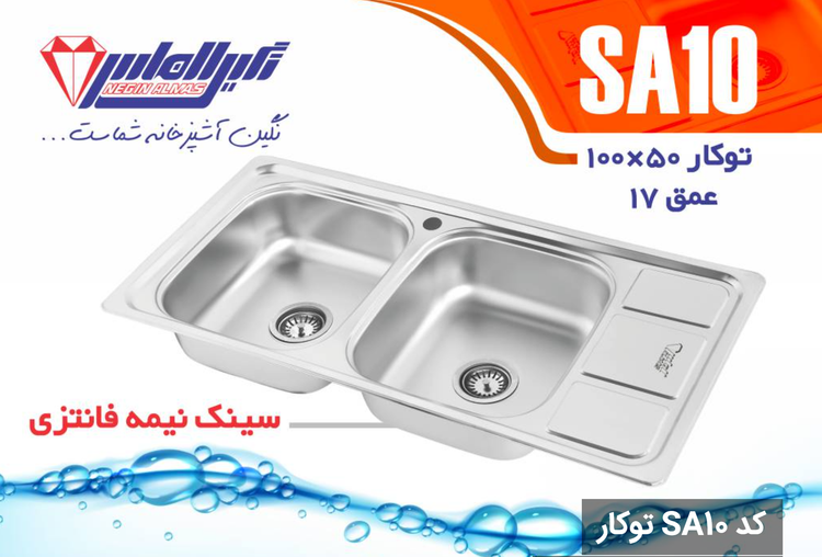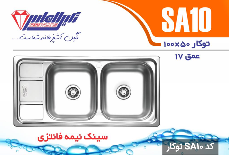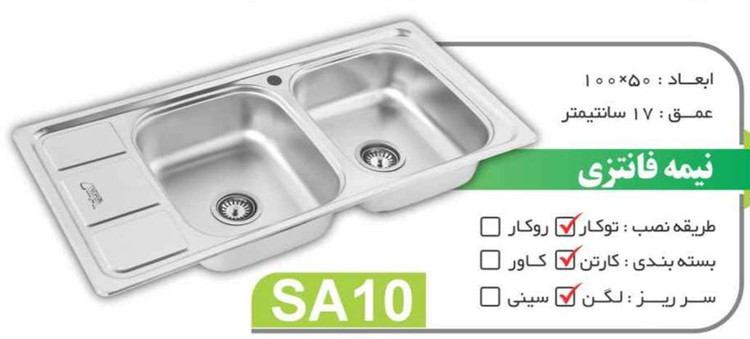 سینک نیمه فانتزی توکار کد SA10 سایز 50×100 عمق 17