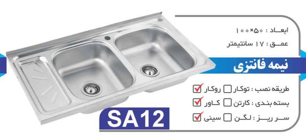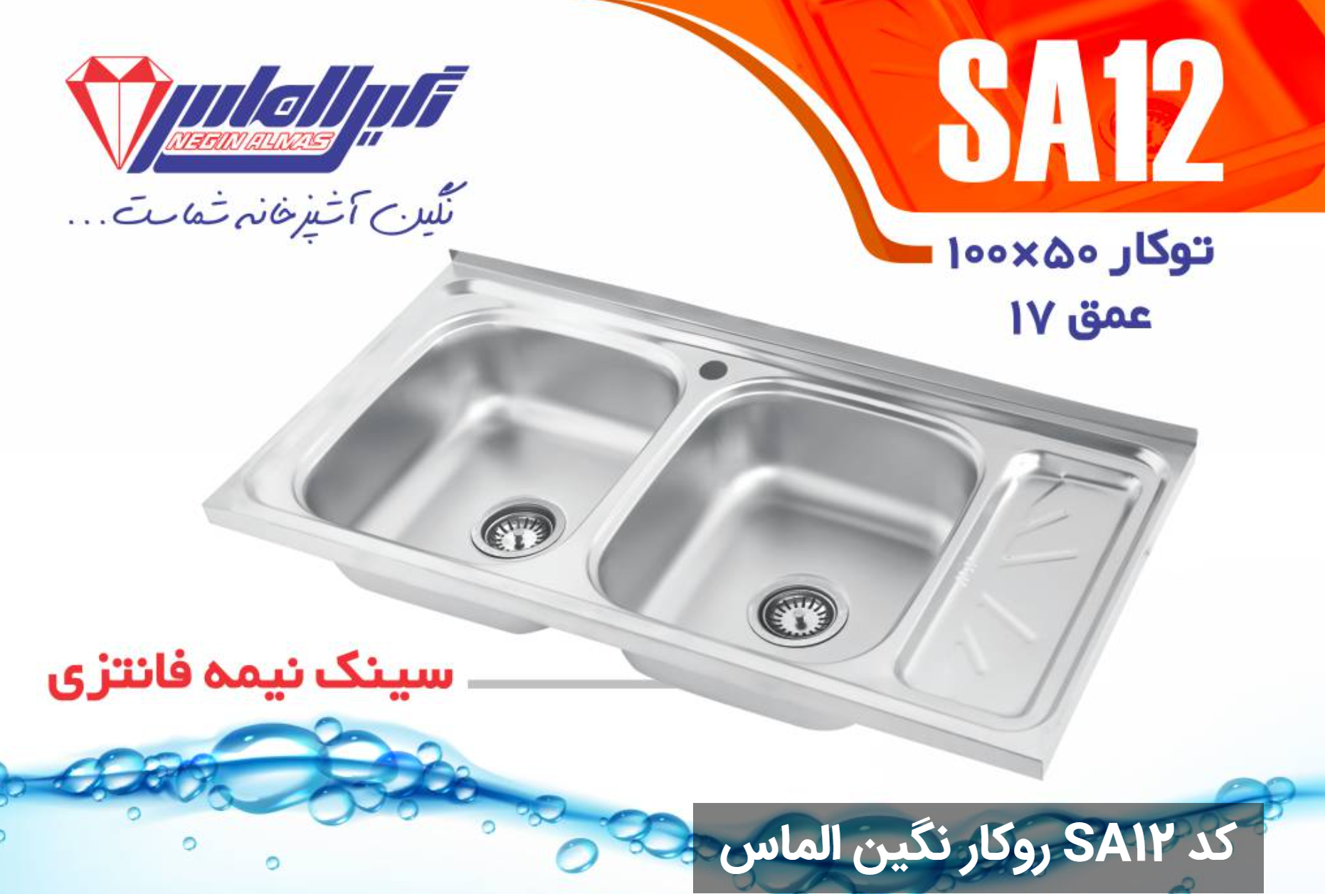 سینک نیمه فانتزی روکار کد SA12 سایز 50×100 عمق 17