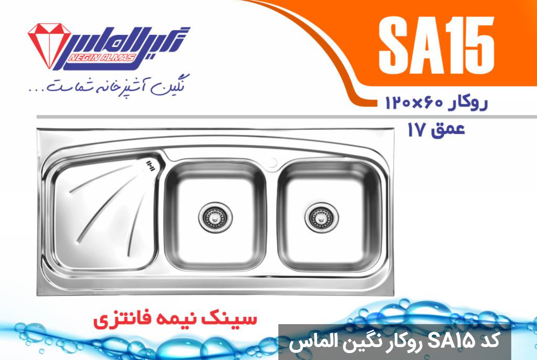 سینک نیمه فانتزی روکار کد SA15 سایز 60×120 عمق 17
