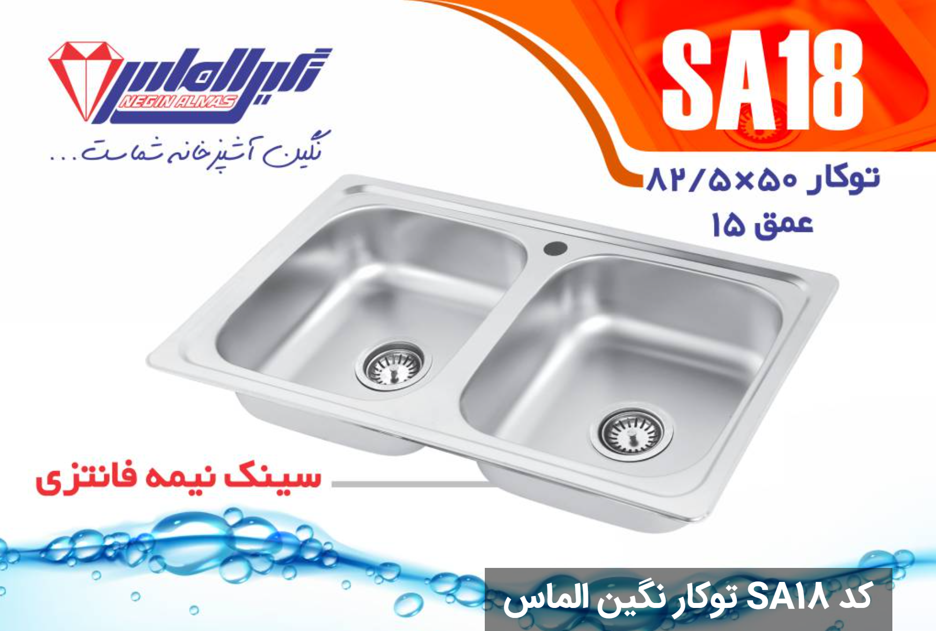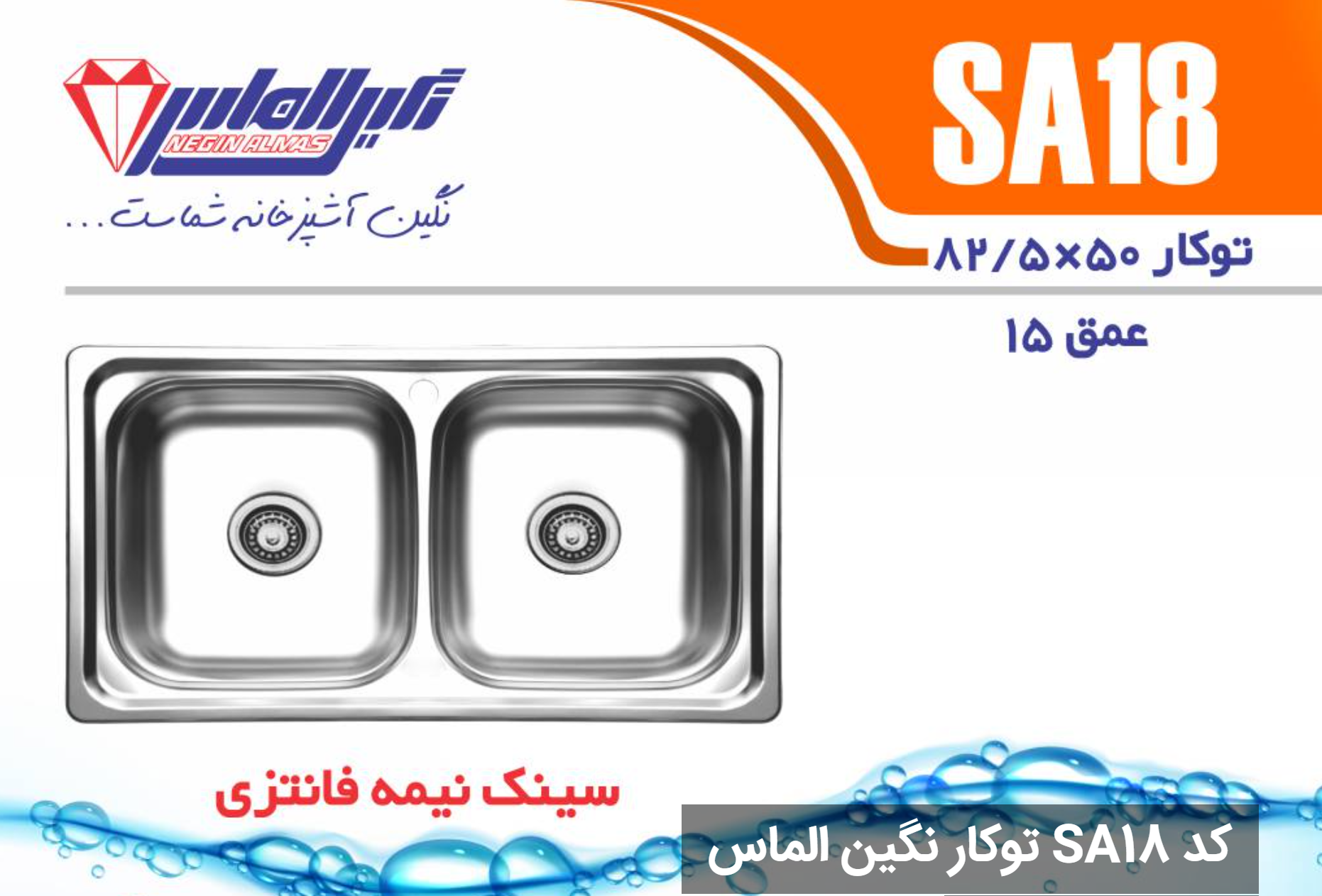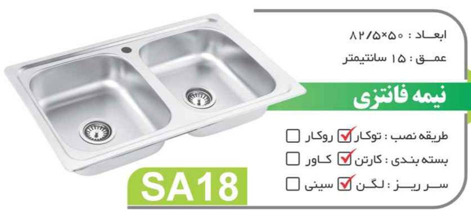 سینک نیمه فانتزی توکار کد SA18 سایز 50×82/5 عمق 15