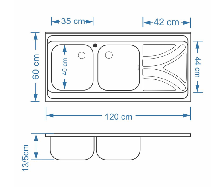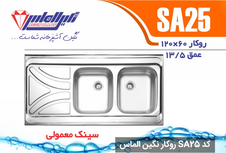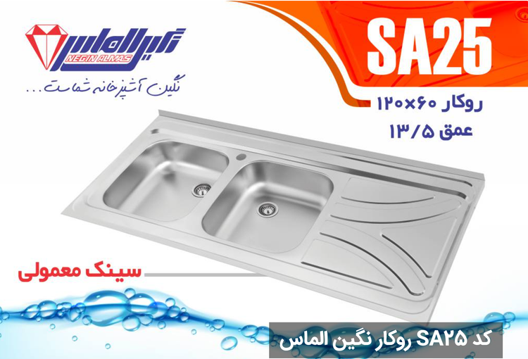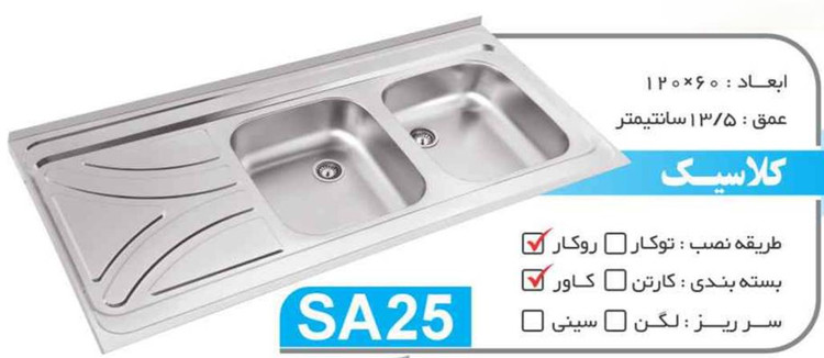سینک معمولی روکار کد SA25 سایز 60×120 عمق 13/5