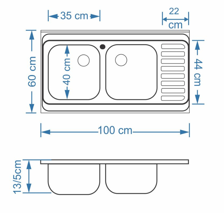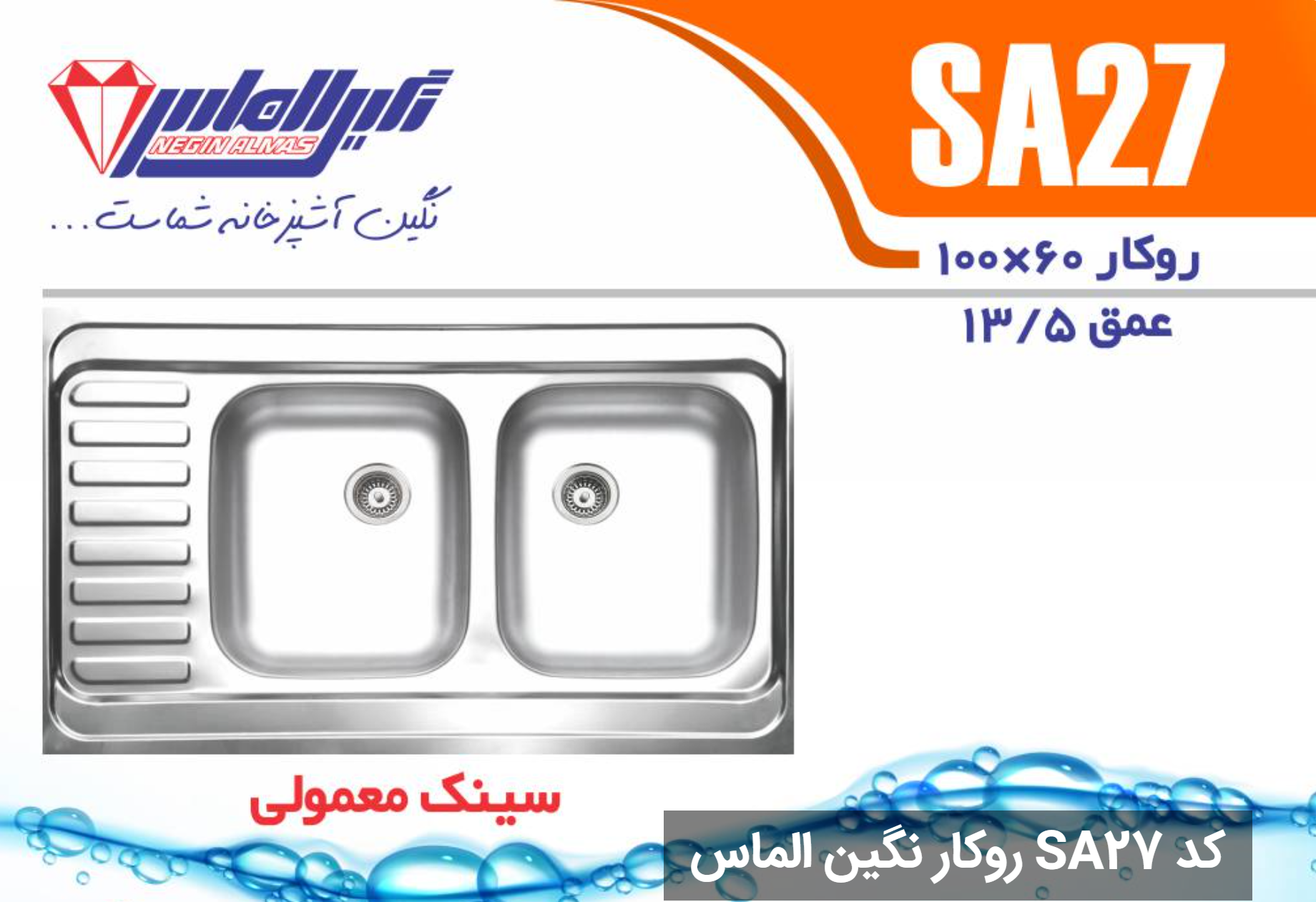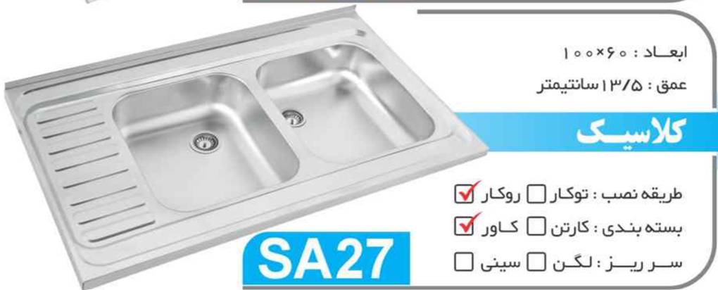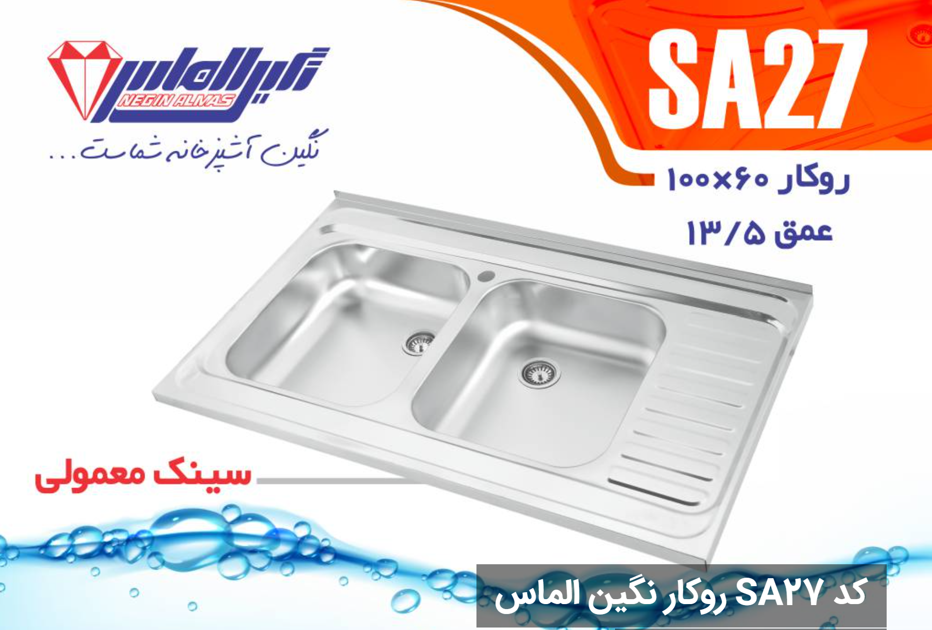 سینک معمولی روکار کد SA27 سایز 60×100 عمق 13/5