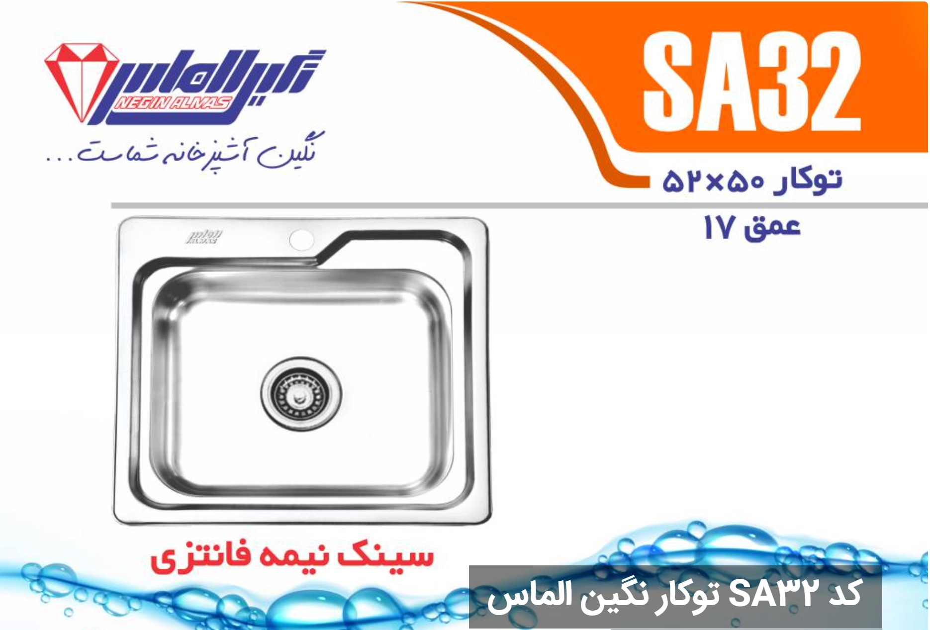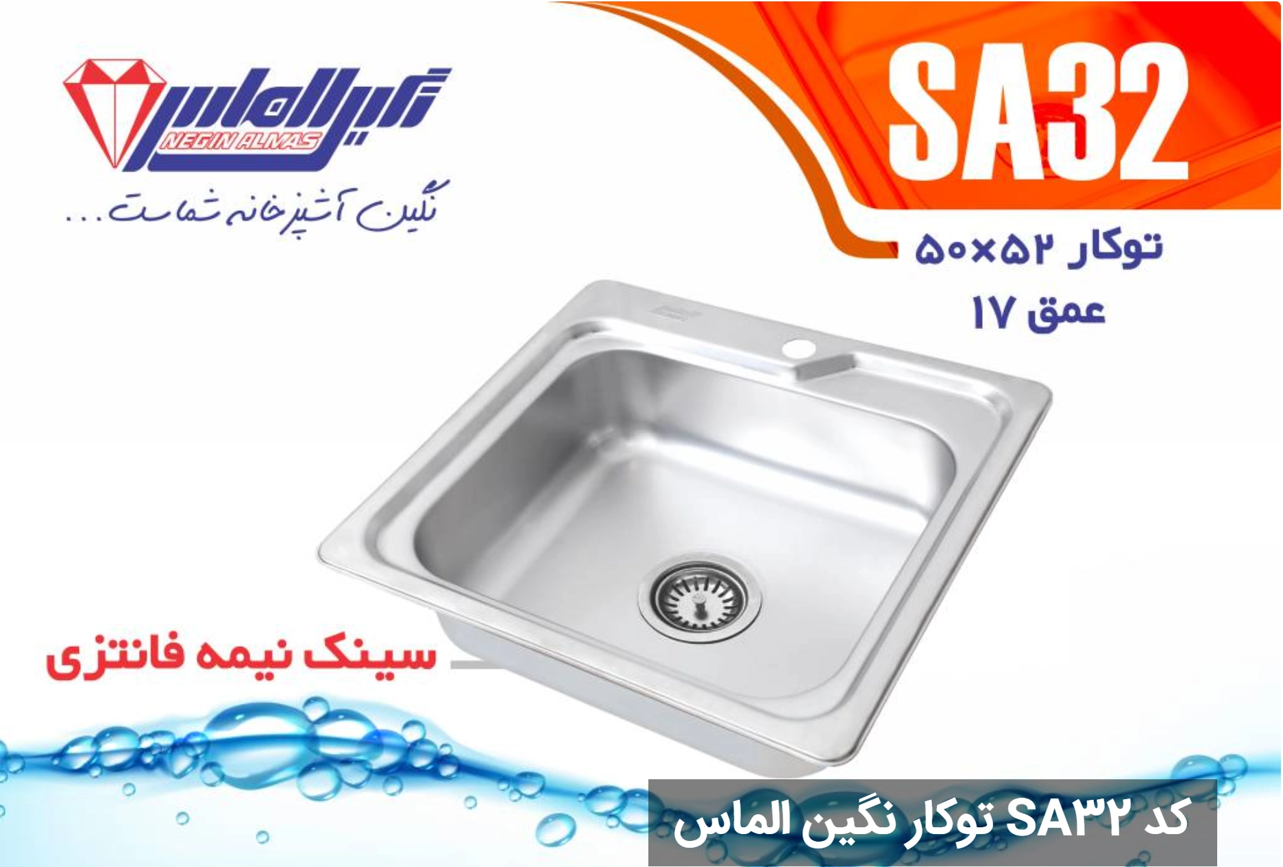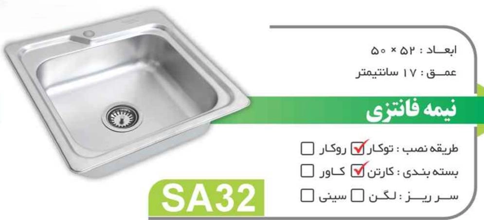 سینک نیمه فانتزی توکار SA32 سایز 50×52 عمق 17