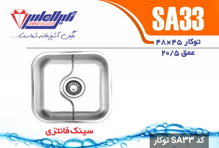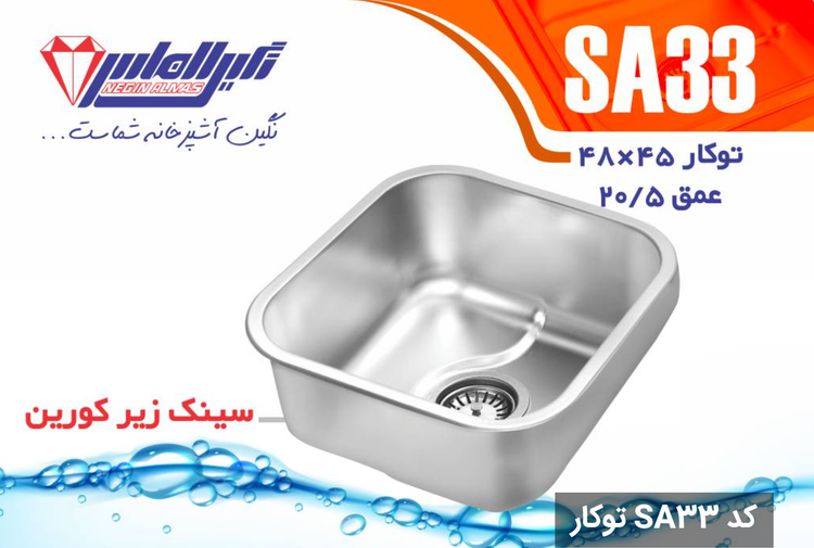 سینک نیمه فانتزی توکار SA33 سایز 48×45 عمق 20/5