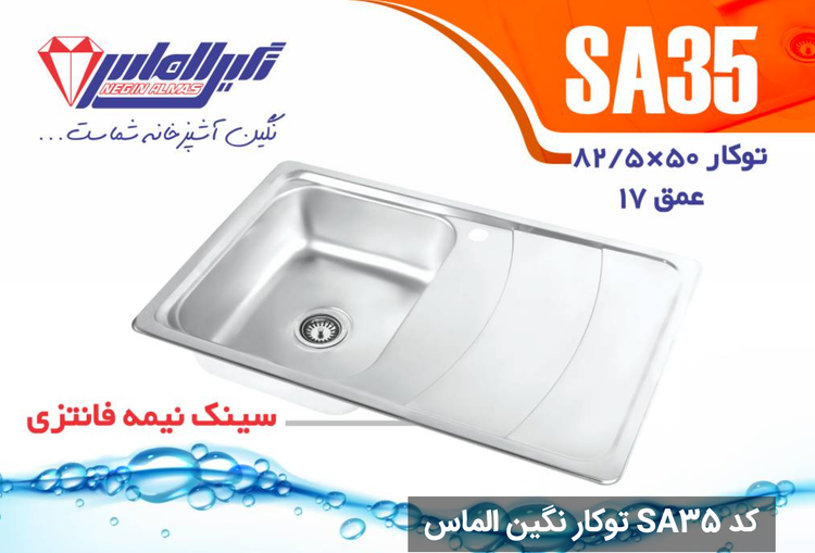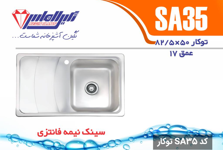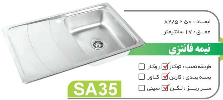 سینک نیمه فانتزی توکار SA35 سایز 50×82/5 عمق 17
