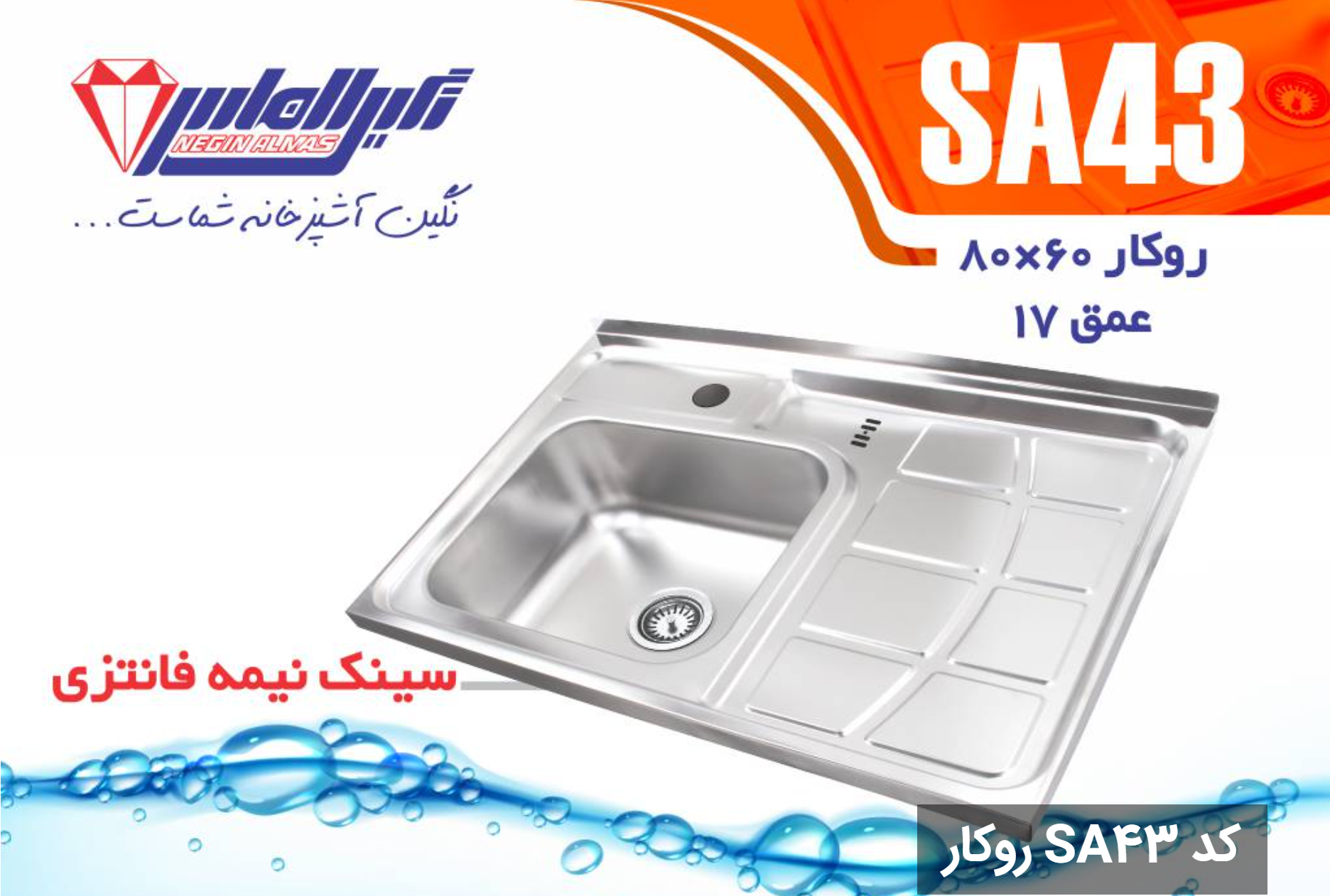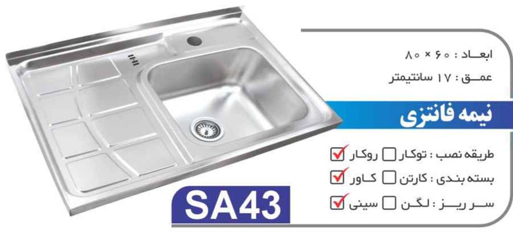 سینک نیمه فانتزی روکار SA43 سایز 60×80 عمق 17