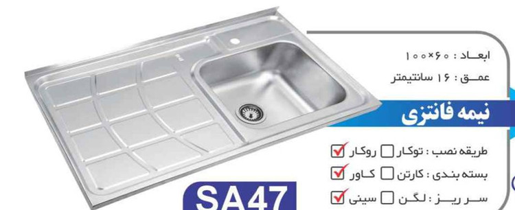 سینک فانتزی روکار SA47 سایز 60×100 عمق 16