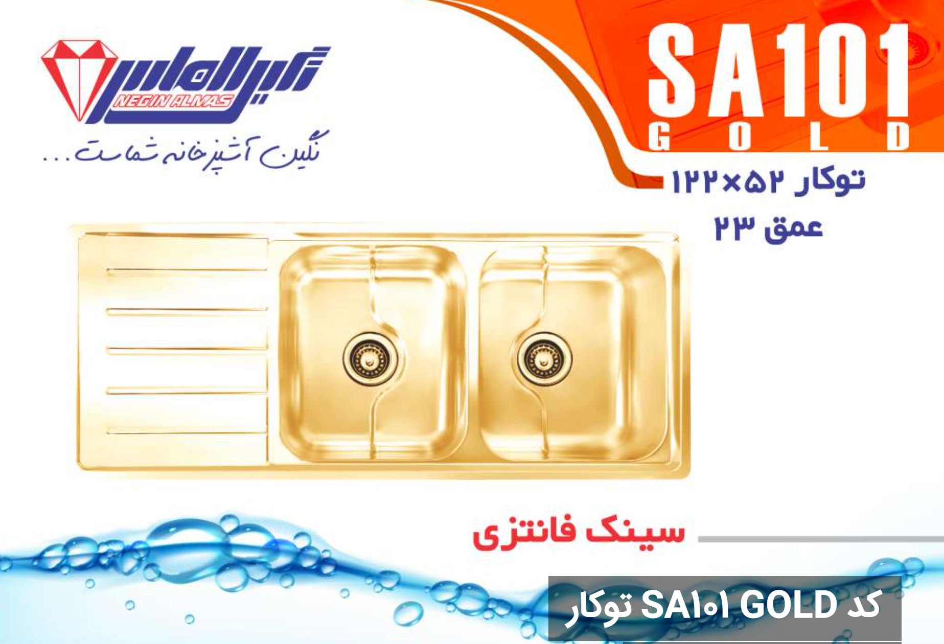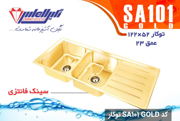 سینک فانتزی توکار SA101 Gold سایز 52×122 عمق 23