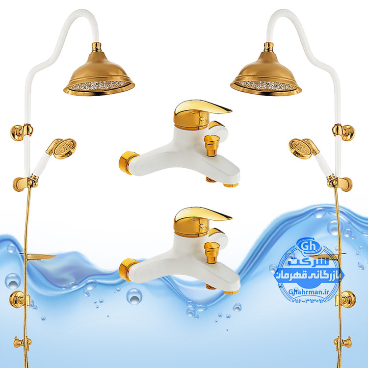 ست ۴ عددی دوش حمام با علم یونیورست شیپوری شیرآلات برند آیدا صنعت مدل قهرمان | سفید طلایی